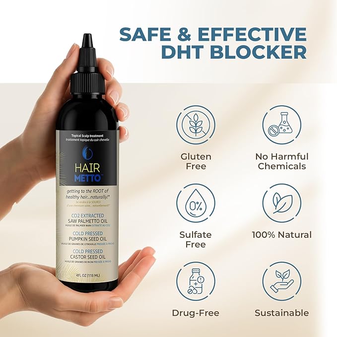 - ππππππππ πππππ, ππππ ππππ π πππ β πππ πππππππ: Get to the root of hair loss naturally with HAIRMETTO Topical saw palmento oil. This 10x potent hair growth oil deliver 85β95% essential fatty acids through CO2-extracted saw palmetto oil and pumpkin seed oil for hair growthβa high-quality, natural DHT blocker that targets thinning and supports stronger roots over time.