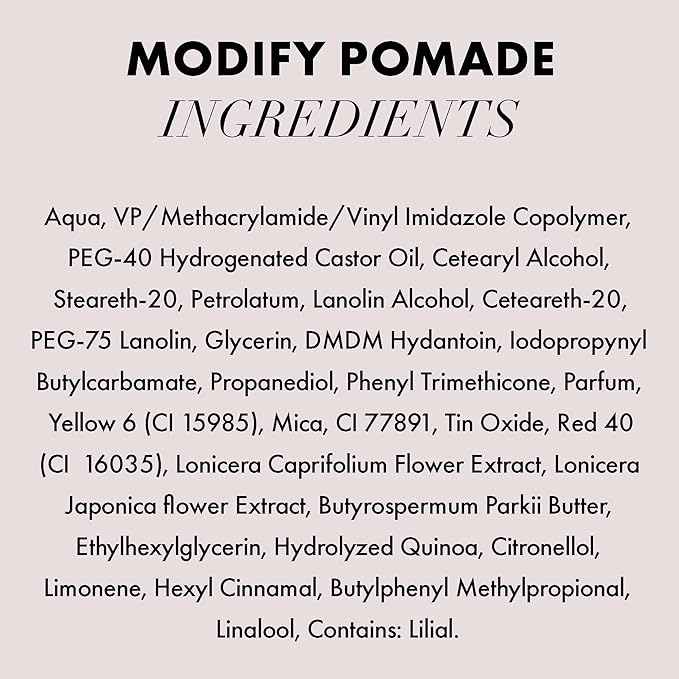 - Helps Promote Healthy Hair: Modify Pomade is rich in botanical ingredients that strengthen hair. Castor seed oil strengthens hair follicles and promotes hair growth, shea butter repairs damaged hair and soothes an itchy scalp, and honeysuckle flower extract protects the hair from chemically-concocted shampoos, hair dryer use and other harsh treatments.