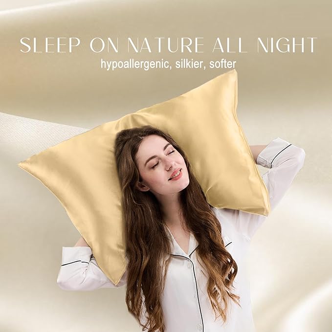 ZIMASILK 100% Pure Mulberry Silk Pillowcase for Hair and Skin Health,Soft and Smooth,Both Sides Premium Grade 6A Silk,600 Thread Count,with Hidden Zipper,1pc(Standard 20''x26'',Champagne)