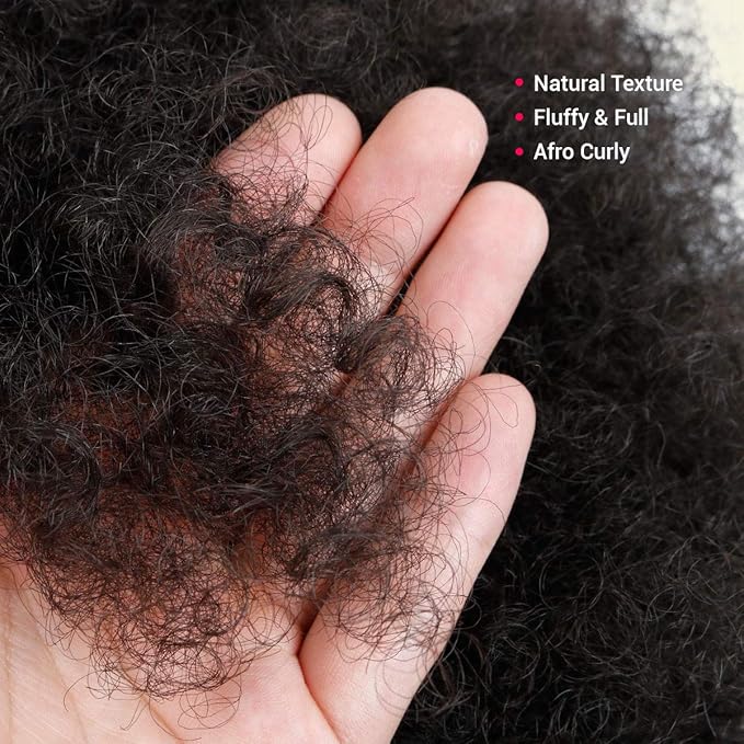 - Short high puff afro kinky ponytail hair extensions.,Average cap size. Looks fuller and more fluffy.Fit on Most People. Can be well blended with your hair, look like your hair and can be use for long itme and repeatedly Can be Washed. Easy to wear