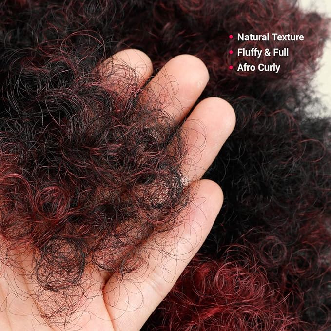 GLAM21USA Afro Puff Drawstring Ponytail Retro Kinky Curly Ponytail Wig Clip in Bun Hair Piece for Black Women Synthetic Hair Extension (LARGE, FS1B/BG (Off black frosted with Burgundy))