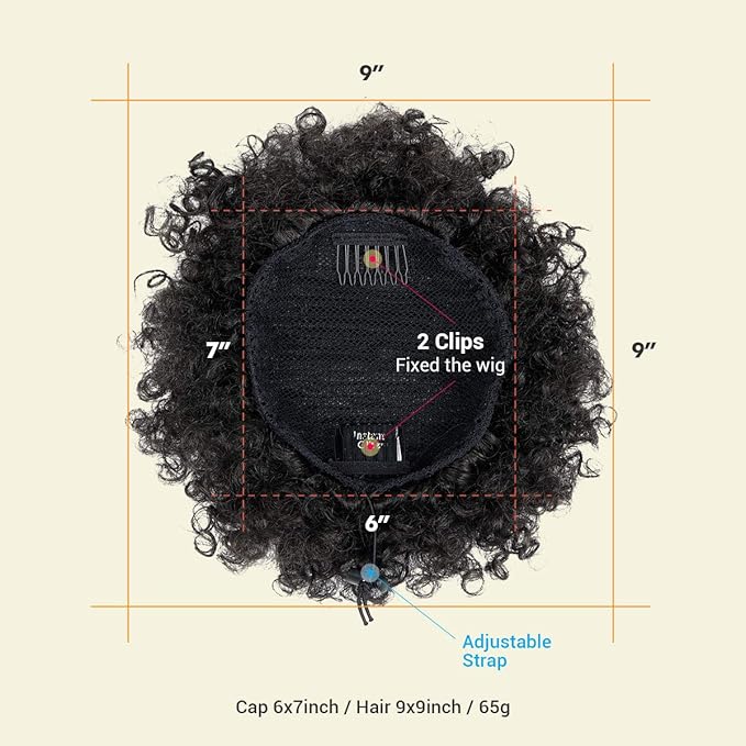 - Short high puff afro kinky ponytail hair extensions.,Average cap size. Looks fuller and more fluffy.Fit on Most People. Can be well blended with your hair, look like your hair and can be use for long itme and repeatedly Can be Washed. Easy to wear