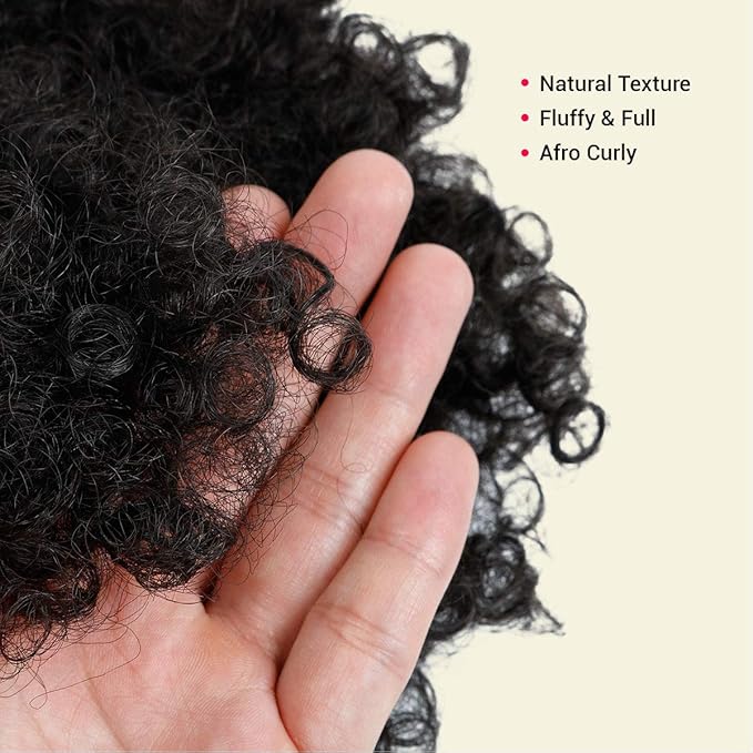 - Short high puff afro kinky ponytail hair extensions.,Average cap size. Looks fuller and more fluffy.Fit on Most People. Can be well blended with your hair, look like your hair and can be use for long itme and repeatedly Can be Washed. Easy to wear