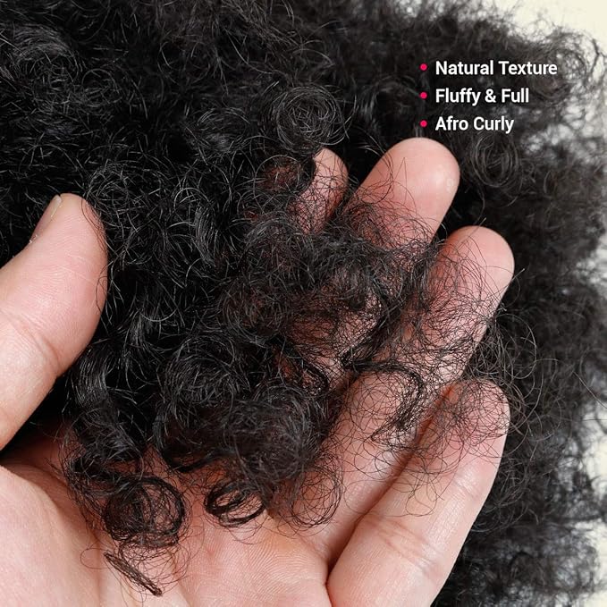 - Short high puff afro kinky ponytail hair extensions.,Average cap size. Looks fuller and more fluffy.Fit on Most People. Can be well blended with your hair, look like your hair and can be use for long itme and repeatedly Can be Washed. Easy to wear
