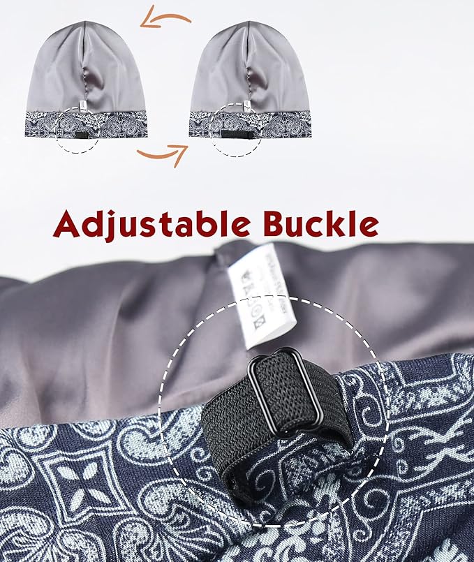 - PATENT PENDING ADJUSTABLE SLEEP CAP-Adjust The Satin Lined Cap Size From 19-34 Inches.Fit All Head Size.Never Worry Too Large Or Small.Adjustable Buckle Is Hidden.You Have No Feeling Its Exist.Strongly Recommended This Magic Satin Lined Head Wrap To Largeead With Frizzy Hair