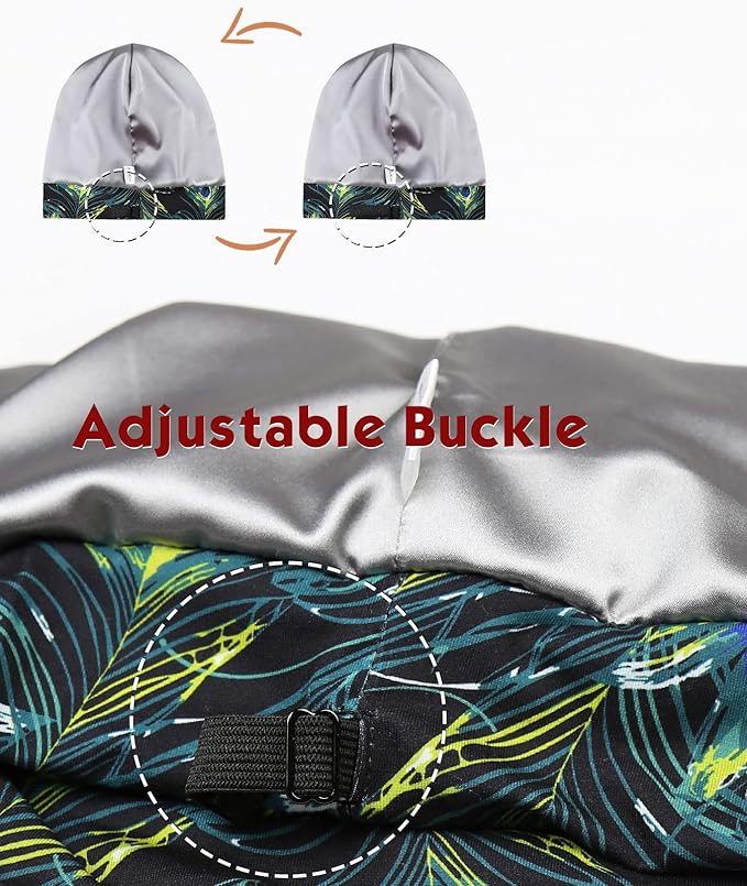 - PATENT PENDING ADJUSTABLE SLEEP CAP-Adjust The Satin Lined Cap Size From 19-34 Inches.Fit All Head Size.Never Worry Too Large Or Small.Adjustable Buckle Is Hidden.You Have No Feeling Its Exist.Strongly Recommended This Magic Satin Lined Head Wrap To Largeead With Frizzy Hair