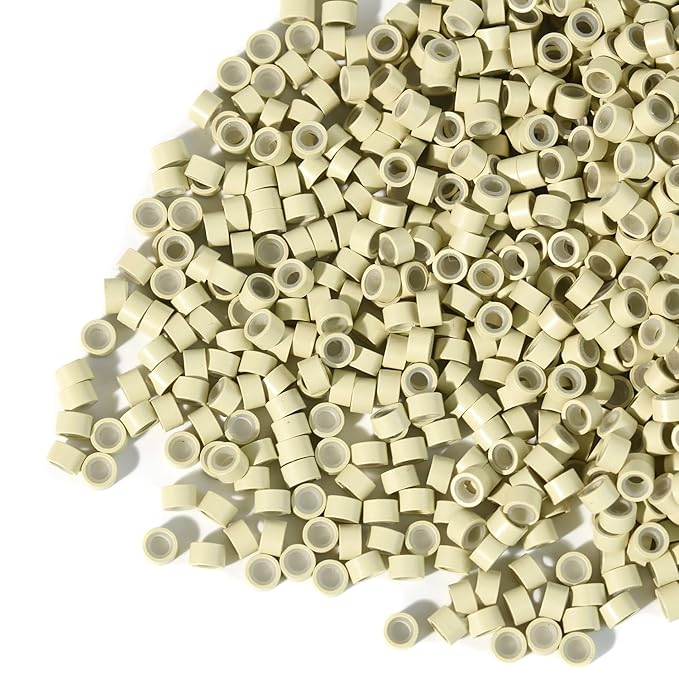 1000pcs Silicone Lined Micro Links Rings Beads Hair Feather Extensions 5.0x3.0x3.0 mm Hair Beads (Blonde)