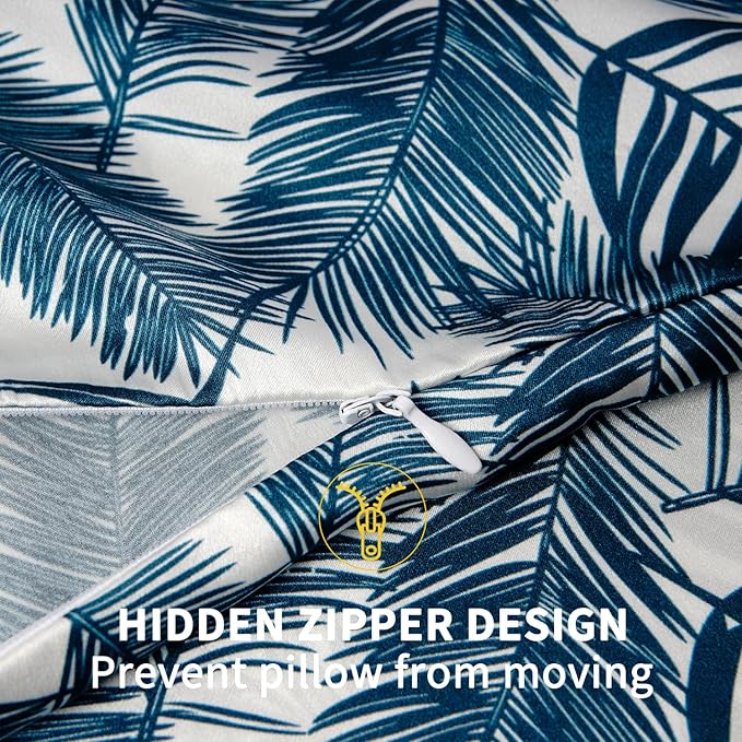 ZIMASILK 100% Pure Mulberry Silk Pillowcase for Hair and Skin Health,Both Sides 19 Momme Silk Floral Print,1pc (Standard 20''x26'',Blue Leaves)