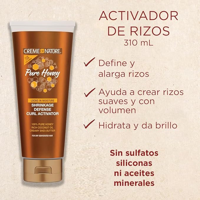 Creme of Nature Pure Honey Define Shrinkage Defense Curl Activator, Moisture-Rich Formula with Coconut Oil & Shea Butter, For Dry, Dehydrated Hair 10.5 oz