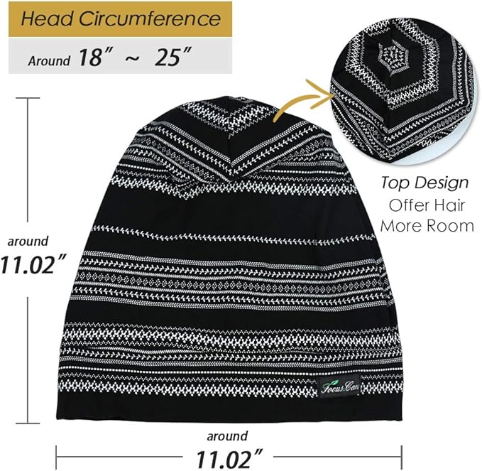 - STYLISH SLEEPING & WORK CAP FOR LONG HAIR:Satin Lined Cap Protect Your Hair Out of the Way.Also Keep Your Hair Moisture. Works very well as a work Cap for Long Hair & Large Heads.Baggy Style Large Room Make Your Head very Comfortable During Your Busy Work.The Working Cap is Very Easy to Take On or Off .Absolutely A Great Choice for Long Hair Girls and Women