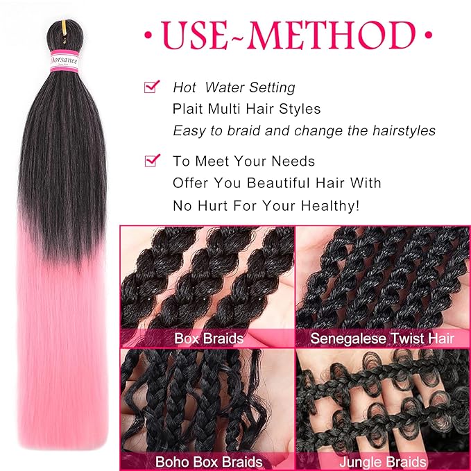 Dorsanee Ombre Pink Braiding Hair Pre Stretched 20 Inch 8 Packs Braiding Hair Extensions for Crochet Box Braids Twists Locs Hair Itch Free Soft Yaki Texture Hot Water Setting (20inch,#1B/Pink)