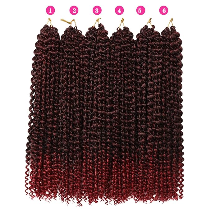 Ubeleco Passion Twist Hair,18 Inch Water Wave Crochet Hair for Women 6 Packs Ombre Burgundy Passion Twist Crochet Hair Long Bohemian Synthetic Curly Braiding Hair Extensions(6pcs,1B/Bug)