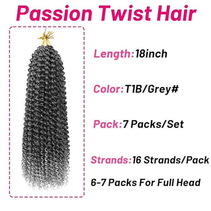 Dorsanee Ombre Gray Passion Twist Hair 18 Inch 7 Packs Water Wave Crochet Hair Long Bohemian Curly Braiding Hair for Butterfly Locs, Faux Locs, Boho Style Spring Twist Crochet Braids (TGray#)
