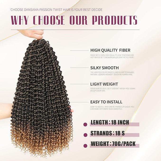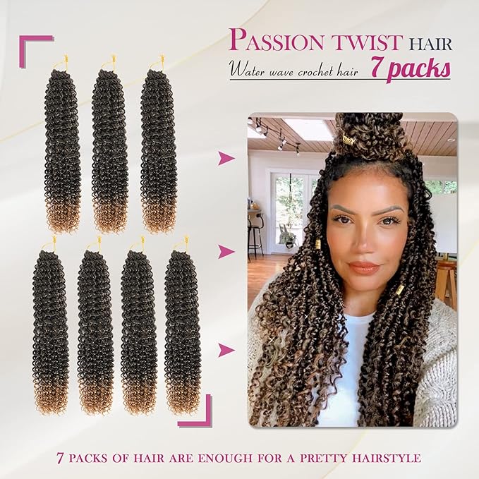 - Package Included: 7 packs 18 inch Water Wave Passion Twist Hair + 1 crochet needle.