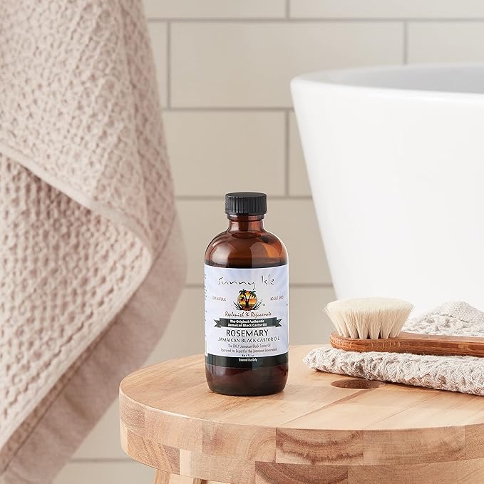 Sunny Isle Rosemary Jamaican Black Castor Oil 4oz | Hair Growth Treatment | For Scalp & Acne-Prone Skin | Hot Oil Application