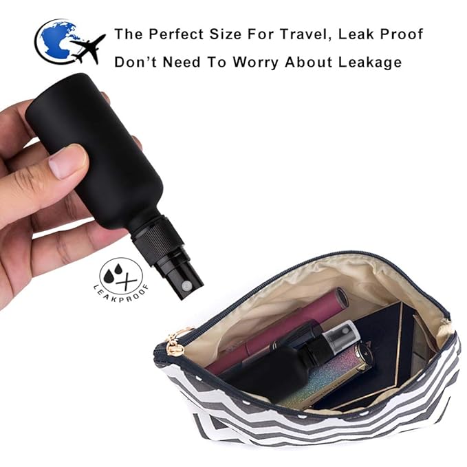 2oz Small Glass Essential Oils Spray Bottles, Fine Mist Frosted Black Spray Bottles (Set Of 3)