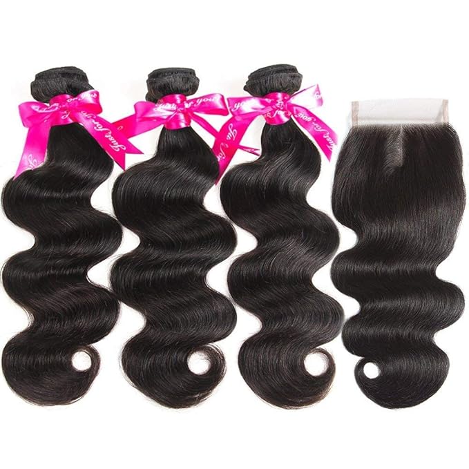 - Package Quantity:Brazilian Body Wave 3 Bundles with Middle Part Lace Closure 4x4inch 130% Density,Pack of 4pcs.