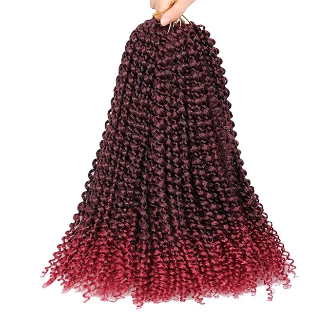 Dorsanee Ombre Burgundy Passion Twist Hair 14 Inch 7 Packs Water Wave Crochet Hair Long Bohemian Curly Braiding Hair for Butterfly Locs, Faux Locs, Boho Style Spring Twist Crochet Braids (TBug#)