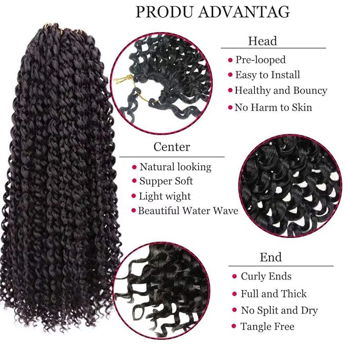 - 1. Boho Braids Crochet Hair Material: Passion Twist Hair 18 inch 6 Pack Water Wave Crochet Hair.Made with 100% High Quality Low Temperature Hot Water Setting Synthetic Fiber.