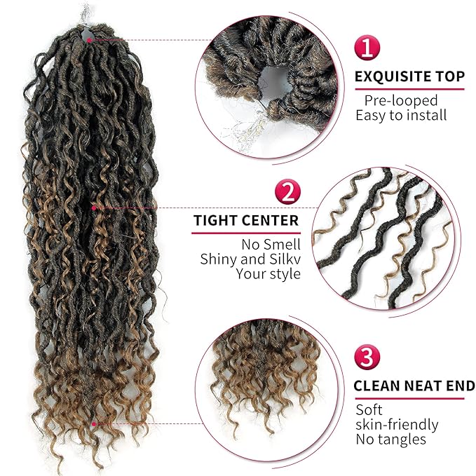 - 1.Material: Synthetic Hair Extensions,New Goddess Locs Crochet Hair Braid Extension With Deep Curly In Middle And Ends.