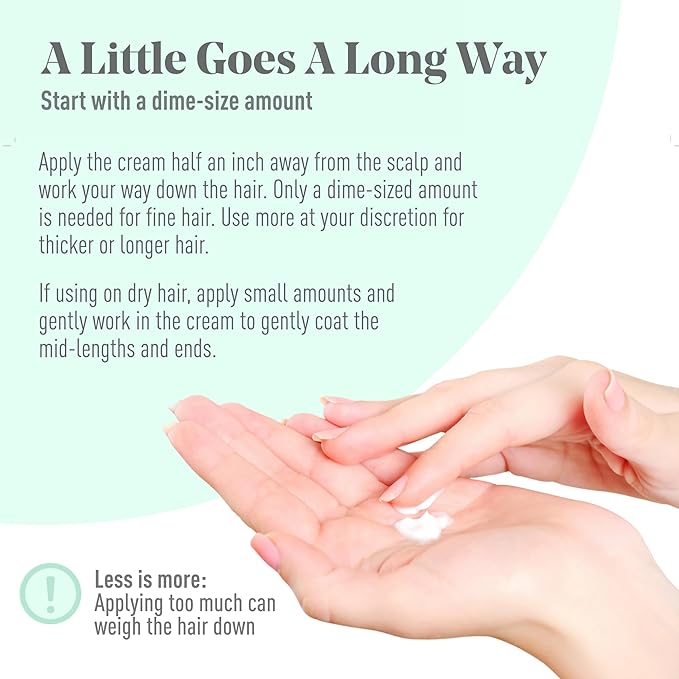 - ✅ A LITTLE GOES A LONG WAY — Apply the cream half an inch away from the scalp and work your way down the hair. Start with only a dime-sized amount. Use more if needed for thicker or longer hair. Do not apply directly on scalp.