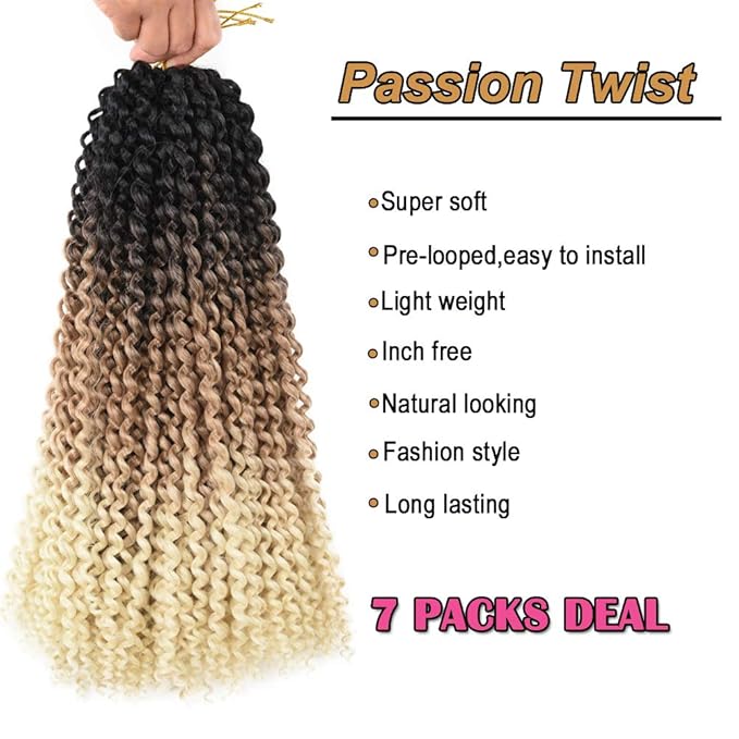 - Package included: 7 packs 18inch Water Wave Passion Twist Hair + 1 crochet needle + some colorful beads