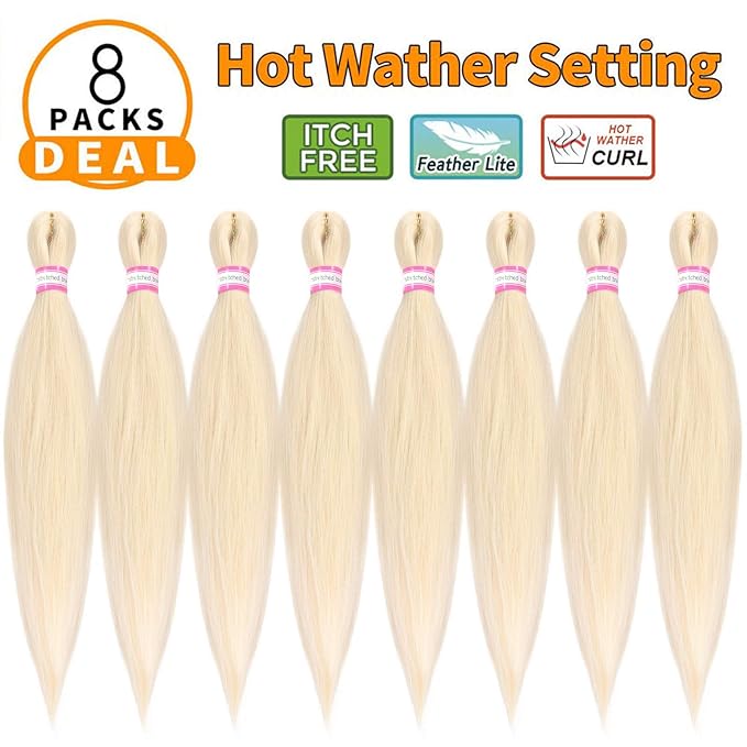 Blonde Braiding Hair Pre Stretched 20 Inch 8 Packs Braiding Hair Extensions for Crochet Box Braids Twists Locs Hair Itch Free Soft Yaki Texture Hot Water Setting (20inch,#613)