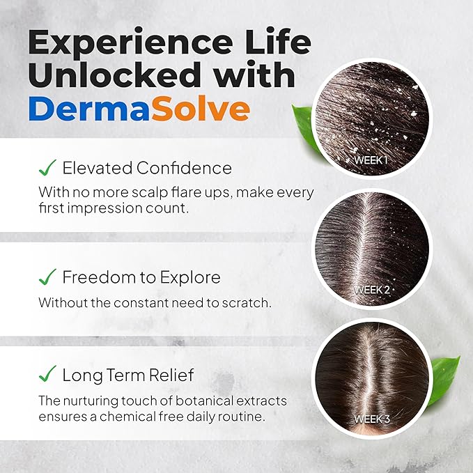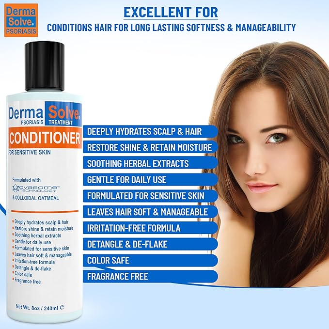 DermaSolve Scalp Psoriasis & Dandruff free Medicated Shampoo with Conditioner, Ultimate Seborrheic Dermatitis Treatment for Itchy, Flakey Scalp, Soothing & Moisturizing Relief