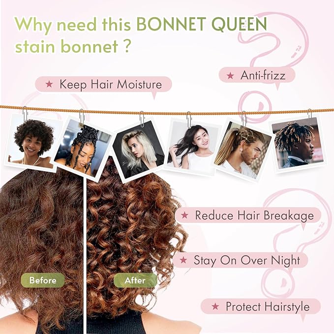 - Bonnet always disappear while opening your eyes? Here come a non-slip Bonnet to solve this headache problem, this satin Bonnets featured with stretchy long band, wide soft, high elastic and skin friendly, you can wrap on head, adjust tightness and then tie to fix Bonnet on head, which can stay on over night, prevent hair from messy, well protect your hair.