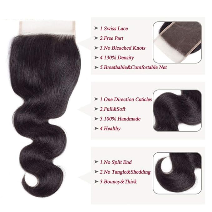 - Color : Hair Bundles with 4x4 Free Part