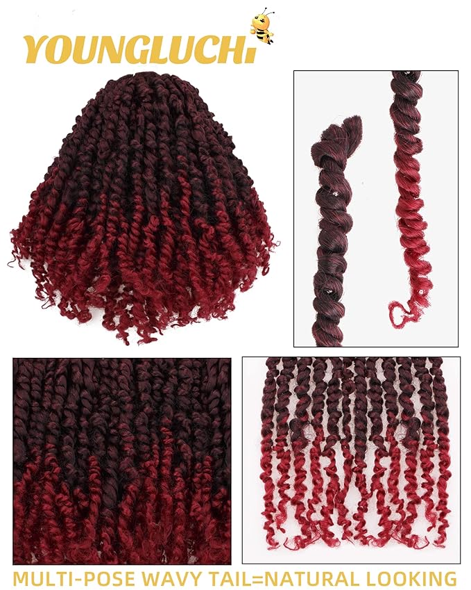 - 1.Fasion Style:Youngluchi Pre-twisted Passion Twist Crochet Hair Is Made Of Spring Kinky Twist Bohemian Curls With High Quality Flame-retardant Hot Water Setting Low Temperature Synthetic Fiber.