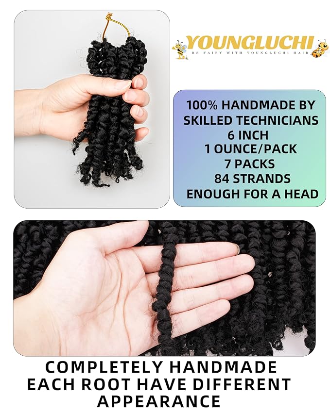 - 1.Fasion Style:Youngluchi Pre-twisted Passion Twist Crochet Hair Is Made Of Spring Kinky Twist Bohemian Curls With High Quality Flame-retardant Hot Water Setting Low Temperature Synthetic Fiber.