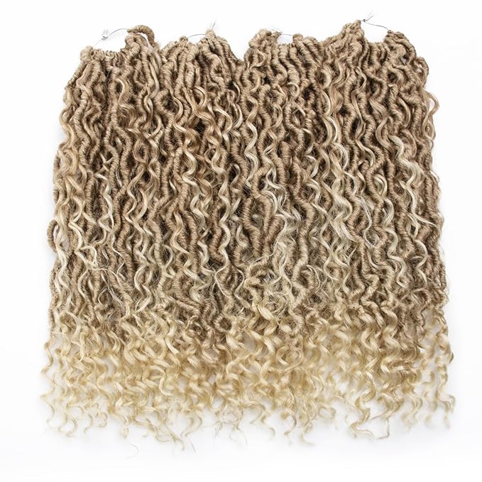 Goddess Locs Crochet Hair 18Inch Boho FauxLocs,Crochet Locs With Curly Ends River Hippie Bohemian Loc Crochet Hair 4Packs(27/613, 18inch)