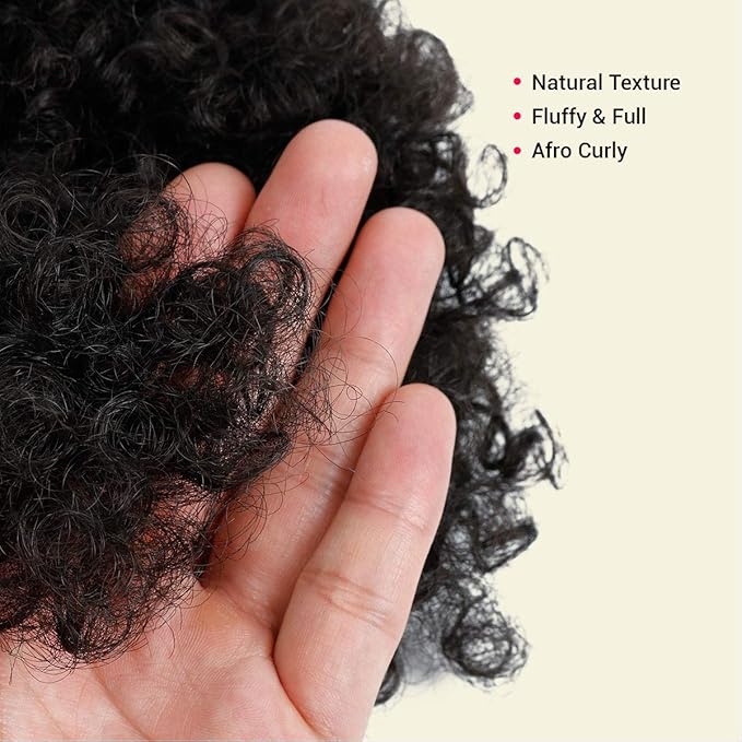 GLAM21USA Afro Puff Drawstring Ponytail Retro Kinky Curly Ponytail Wig Clip in Bun Hair Piece for Black Women Synthetic Hair Extension (SMALL, 1B (Off Black))