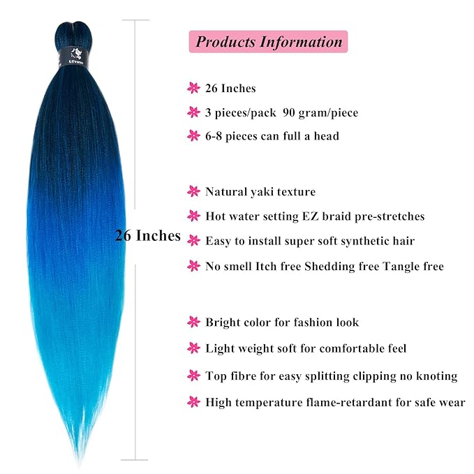 - The blue braiding hair pre stretched synthetic hair for braiding may show small differences on different screens.