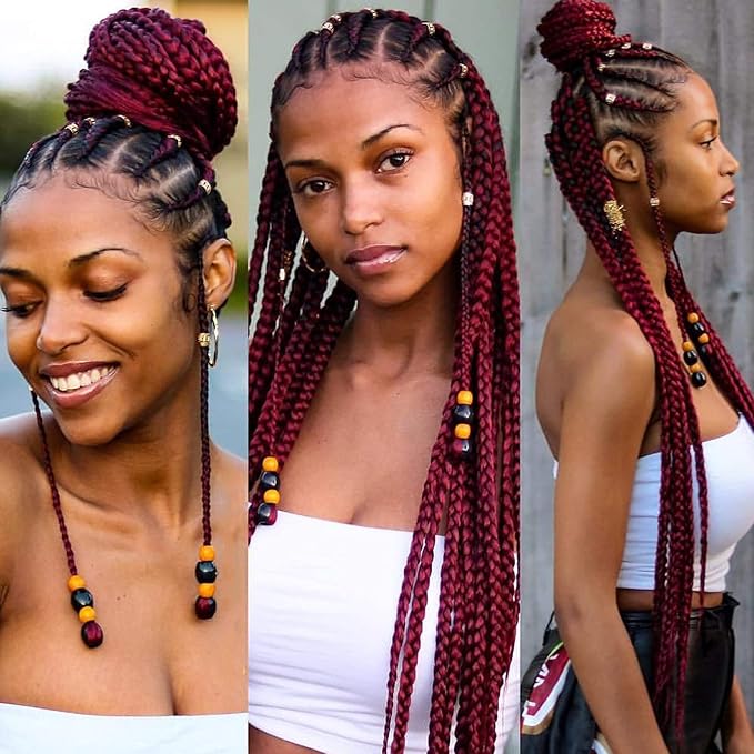- 【Material】Burgundy braiding hair pre stretched made with high quality flame-retardant synthetic fiber hair. Professional pre stretched braiding hair extensions. pre-cut/pre-feathered/pre-layered.