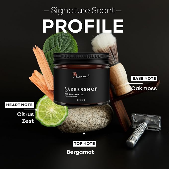 BAHAWAT Hair & Beard Butter for Men Leave-in Conditioner - Barbershop scent - Strengthen & Soften– Made in USA -Organic Natural Ingredients | The Best Beard Butter - 2 oz.