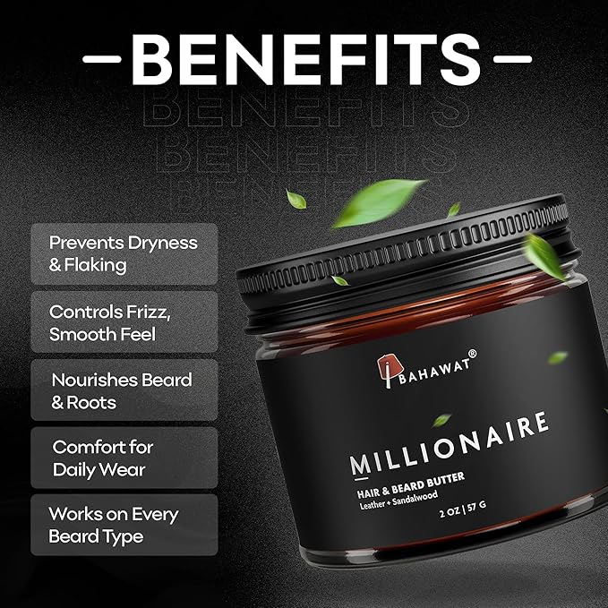 BAHAWAT Hair & Beard Butter for Men Leave-in Conditioner - Leather & Sandalwood scent - Strengthen & Soften– Made in USA -Organic Natural Ingredients | The Best Beard Butter - 2 oz.