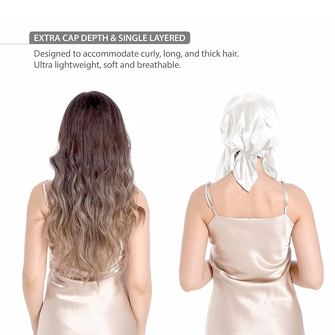 - EXTRA LARGE AND DEEP: Looking for a large bonnet for thick hair or big head? Then look no further! Our silk cap with extra depth covers up to 30-inch long hair.