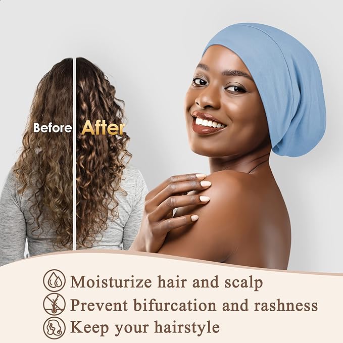 - Protect Hair Health: At night to protect hair from tangling. Whether you have curly frizzy hair or braided hair, wearing OLESILK silk night cap can give your hair frictionless care. The sleeping cap doesn't slip off at night or squeeze your head. With this hair cover bonnet to wrap your styled hair up at night to ensure it's ready to go for work the next day.