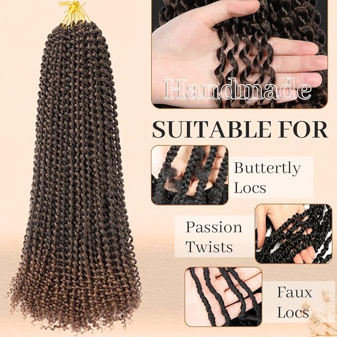 - ✔ [Hair quality]Passion Twist hair using pure handmade, hundred hair synthetic hair, water wave hundred hair using high quality low temperature flame retardant synthetic fiber, hot water styling water wave crochet hair.