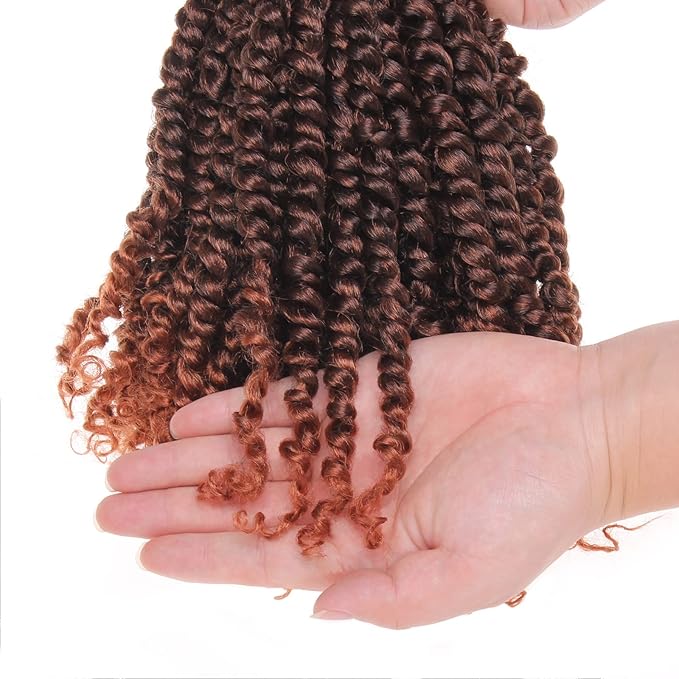 ZRQ Short 8 Packs Pre-twisted Bob Passion Twist Crochet Hair with Curly Ends 8 Inch Pre looped Ombre Copper Red Passion Twists Hair 12 Roots/Pack Synthetic Crochet Braids Hair for Women T350#