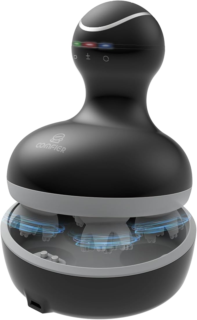 - Relaxing Scalp Massage: Comfier electric scalp massager is equipped with four massage heads with 28 individual nodes each which rotates both in clockwise and anti-clockwise direction giving you a soothing massage to help stimulate hair growth, increase blood circulation to the scalp and relief stress.