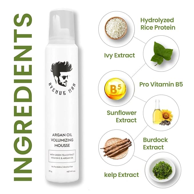 - Infused With Premium Herbal Extracts for Stronger Hair: More than just a styling product - this men hair mousse fortifies and nourishes your hair with a potent blend of argan oil, green tea, ginseng, and vitamin E. Argan oil deeply hydrates and restores shine, while aloe vera and chamomile provide soothing moisture, keeping hair healthy, soft, and resilient