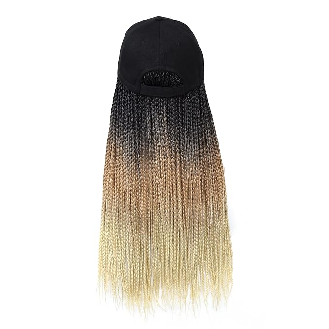 Braided Baseball Cap Wig Box Braid Hair Extensions with Hat Ombre black brown blonde Cap Wig with 18inch Long Synthetic Braiding Hair for Women (18inch 1B/27/613)