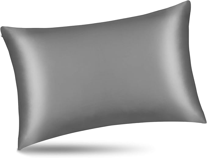 ALASKA BEAR Natural Silk Pillowcase, Hypoallergenic, 19 Momme, 600 Thread Count 100 Percent Mulberry Silk, King Size with Hidden Zipper (1pc, Iron Grey)
