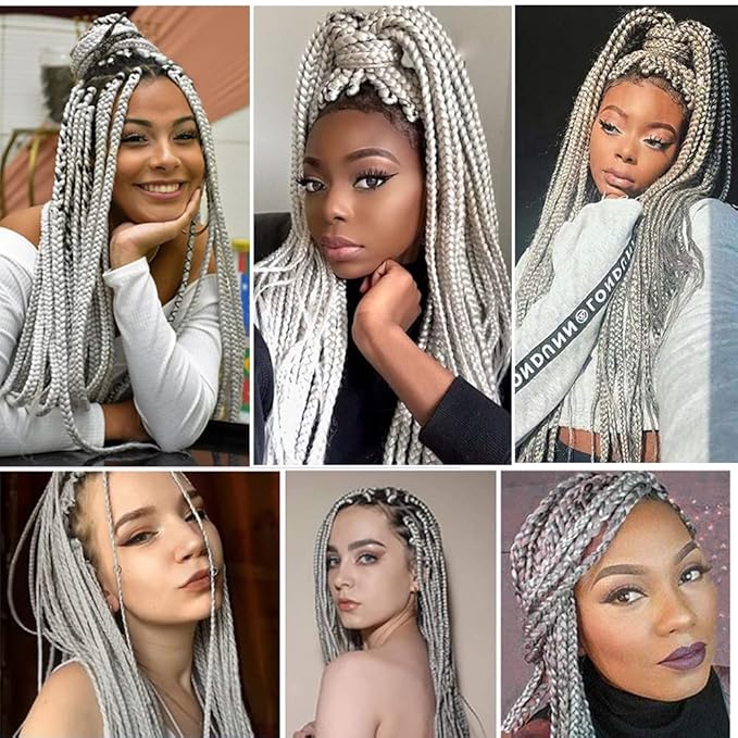 AQINBEL Braiding Hair 8 Bundles/Pack 26" Pre-Stretched Silver Grey Extensions - Itch-Free Crochet Twist Braids With Yaki Texture for Women