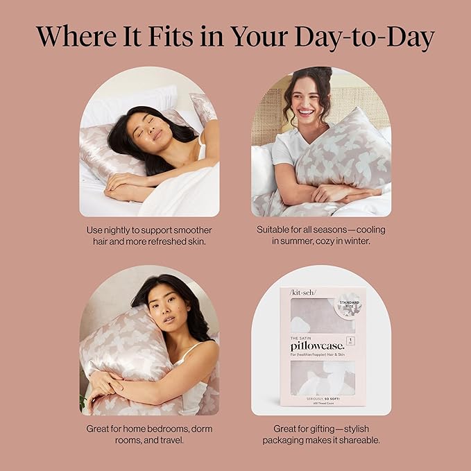 - LUXURY SATIN PILLOWCASE FOR HAIR & SKIN – Wake up to smoother hair and glowing skin with our bestselling satin pillowcase. Designed to reduce frizz, tangles, and breakage by creating less friction than cotton pillow cases, while helping prevent sleep lines and facial creases.
