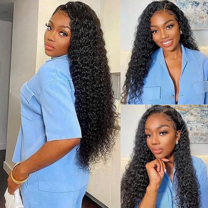 - ๐ ใHUMAN HAIR WIGSใ:Water Wave Lace Frontal Wigs 18-30 Inch in Stock,True To Length,150% Density,Natural Black Color, 13x4 Lace Front Wigs Can be Part Any Way, Can be Restyled to The Middle Part and the Partial Part, Easy to Make a Pontail and Braid a Bundle of Hair,More Styles Depends on Your Like.