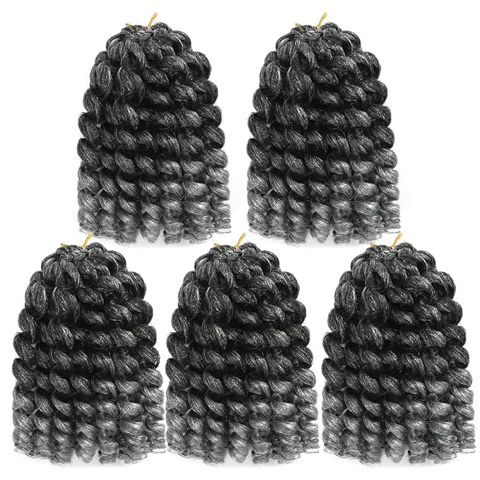 5 Packs Jamaican BounceCrochet Hair 2X Ringlet Wand Curl 8 inch Synthetic Crochet Hair Extensions Crochet Braiding Hair 100 Roots (8Inch (Pack of 5), TGrey)